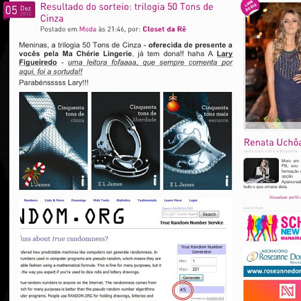Parabéns a nossa ganhadora da promoção de Dezembro Lary Figueiredo, que irá levar o Grey para sua casa. #Trilogia #cinquentatons #Ui